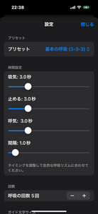 自分のペースに合わせて、呼吸の長さや回数を自由に設定できます。